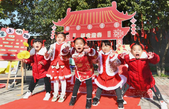 2021年12月31日,伴随着热闹的锣鼓声,迎江区一校园里,一场萌娃元旦集市庙会活动正式启动,民俗小吃、扮虎打卡、动感舞龙、啦啦操秀、萌娃送福等热闹上场,老师与家长志愿者联手为孩子们打造一台充满年味的萌娃庙会。孩子们穿着节日盛装,喜气洋洋地跳起《过新年》,大家一起“迎”新年,“品”年味,“庆”元旦!(记者 黄有安 通讯员 刘彦 摄)