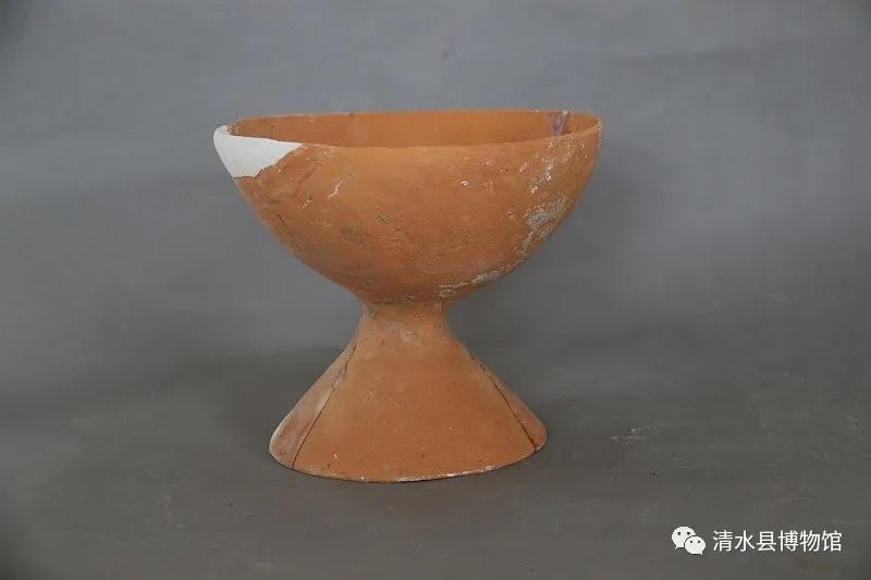 常下文化红陶豆,高16cm,口径19.5cm。豆泥质红陶,敛口,斜壁,圈足呈喇叭口形。