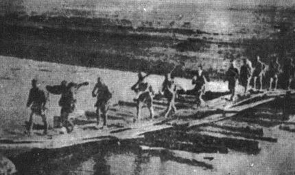 |▲野战军渡过泾河向西安挺进。|