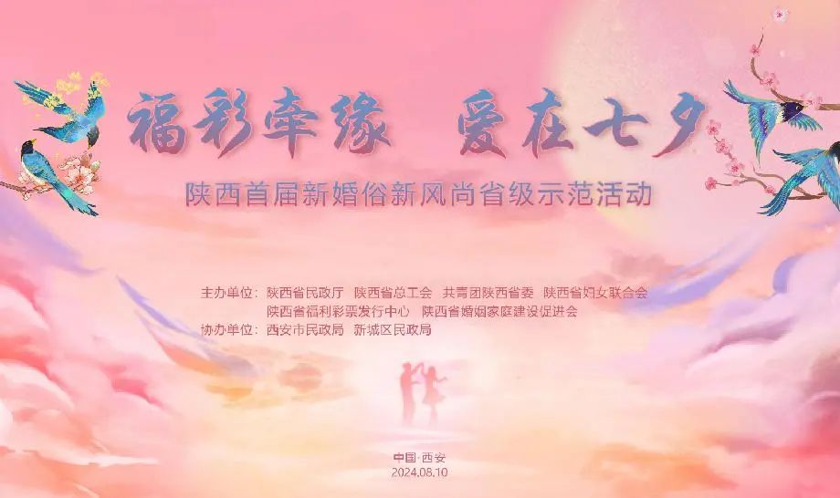今年的8月10日,是中国传统的七夕佳节,为大力推进婚姻领域移风易俗,引导新人树立文明、健康、理性的婚恋观,陕西省民政厅等4部门计划举办“福彩牵缘 爱在七夕”陕西省首届新婚俗新风尚省级示范活动,现面向全省招募新人!