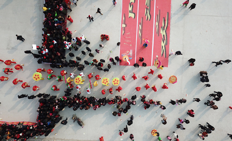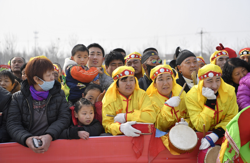 2月26日,阳信县洋湖乡张王村秧歌队在表演。