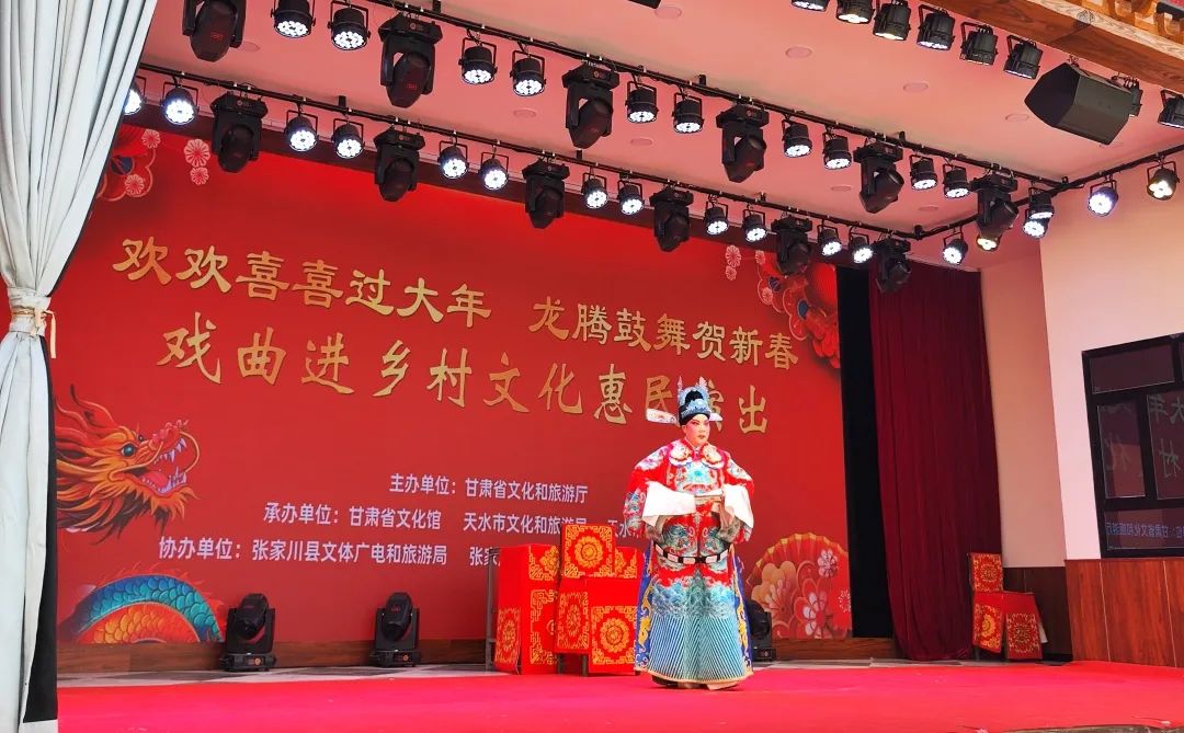 为充分发挥戏曲在传承中华优秀传统文化中的积极作用,2024年1月26日—27日甘肃省文化馆组织戏曲团体赴天水市甘谷县六峰镇新庄村和张家川回族自治县龙山镇汪堡村开展送戏曲进乡村文化惠民演出活动。