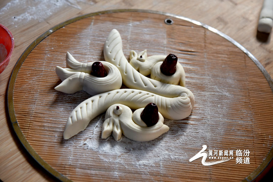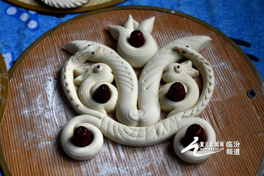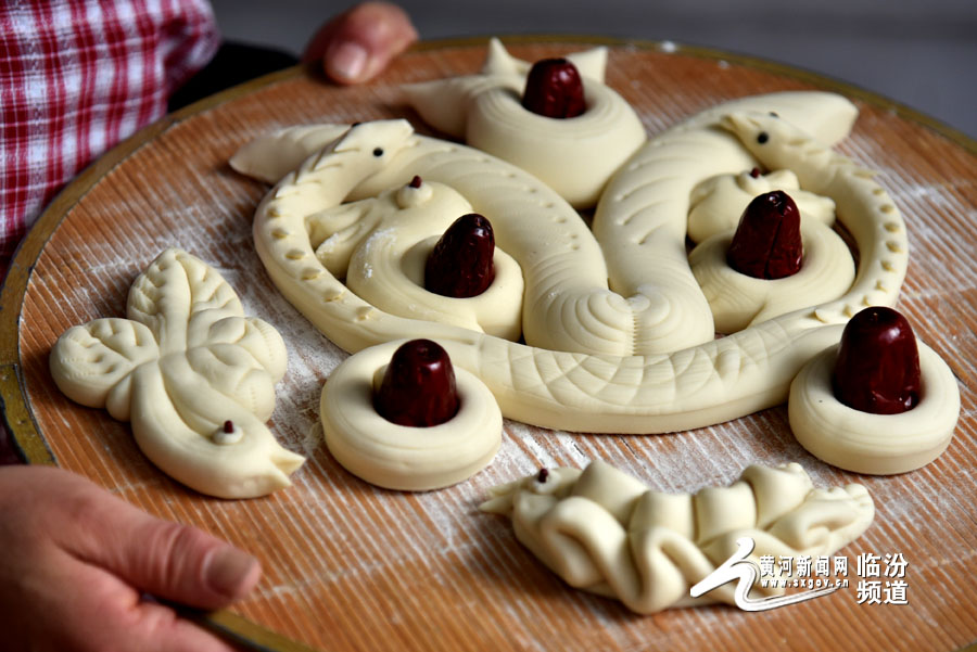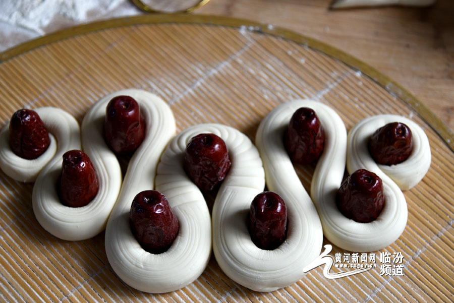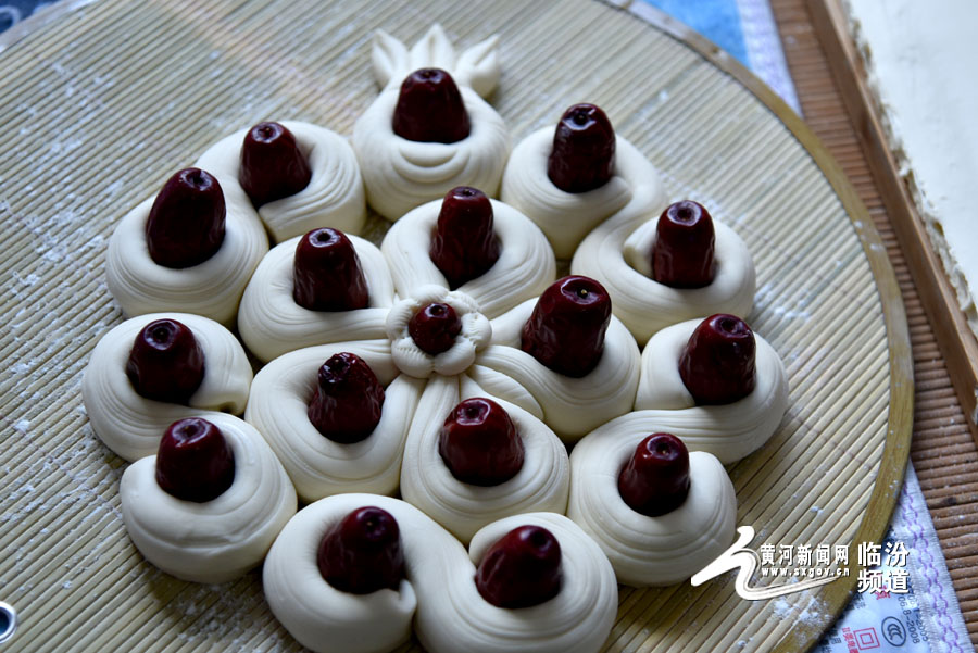 在山西省浮山县,至今仍较为完整的保留和传承着蒸枣花馍的年俗和制作技艺。祖先牌位前除了干果水果外,还一定要摆放“栆山”;去给长辈拜年,不管买再多烟、酒、奶、礼盒,也总是不能少了“枣花子”。