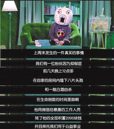网络脱口秀主持人“王尼玛”发布的抑郁症患者信息。