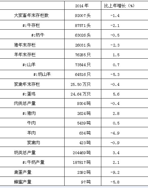 畜牧产业持续优化升级。2014年底,全县大家畜存栏9.20万头,其中:牛存栏8.76万头,奶牛存栏6.30万头;羊存栏7.63万只;猪存栏2.60万头;家禽存栏25.5万只。全年肉类总产量9304吨,奶类总产量20.45万吨。全县已建成各类规模化养殖场104个,其中:奶牛场(小区)25个,奶山羊场25个,肉牛场10个,肉羊场5个,生猪养殖场25个,养鸡场5个,梅花鹿、野猪、火鸡、獭兔、林麝等特种养殖场9个。和氏杜阳千头奶牛场成功创建为国家级标准化示范场,和氏神泉奶牛场、和氏白牛寺奶牛场、东南东兴奶牛场、城关镇麻坊埔隆兴奶牛场成功创建为省级标准化示范场。