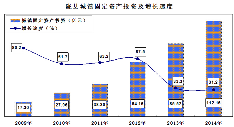 固定资产投资快速增长,投资额突破百亿元大关。全县完成全社会固定资产投资116.02亿元,比上年增长33.9%;重点推进项目2014年为133个,同比增加17个,增长14.7%。其中完成城镇固定资产投资112.16亿元,增长31.2%;农村完成固定资产投资3.86亿元,同比增长2.5倍。城镇固定资产投资按国民经济行业分:第一产业完成投资19.93亿元,同比增长30.1%;第二产业完成投资5.80亿元,下降27.6%;第三产业完成投资86.43亿元,同比增长39.0%。三次产业投资占比为17.8:9.4:72.8。