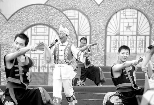 安塞“民歌大王”贺玉堂在首届安塞黄土风情文化艺术节上演唱陕北民歌(2008年9月23日摄)。新华社记者陶明摄
