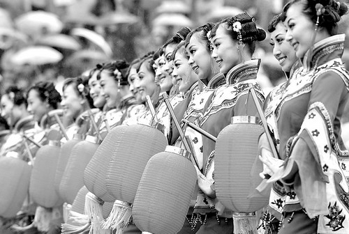安塞民间艺人在首届安塞黄土风情文化艺术节上表演舞蹈《挂灯笼》(2008年9月23日摄)。新华社记者陶明摄