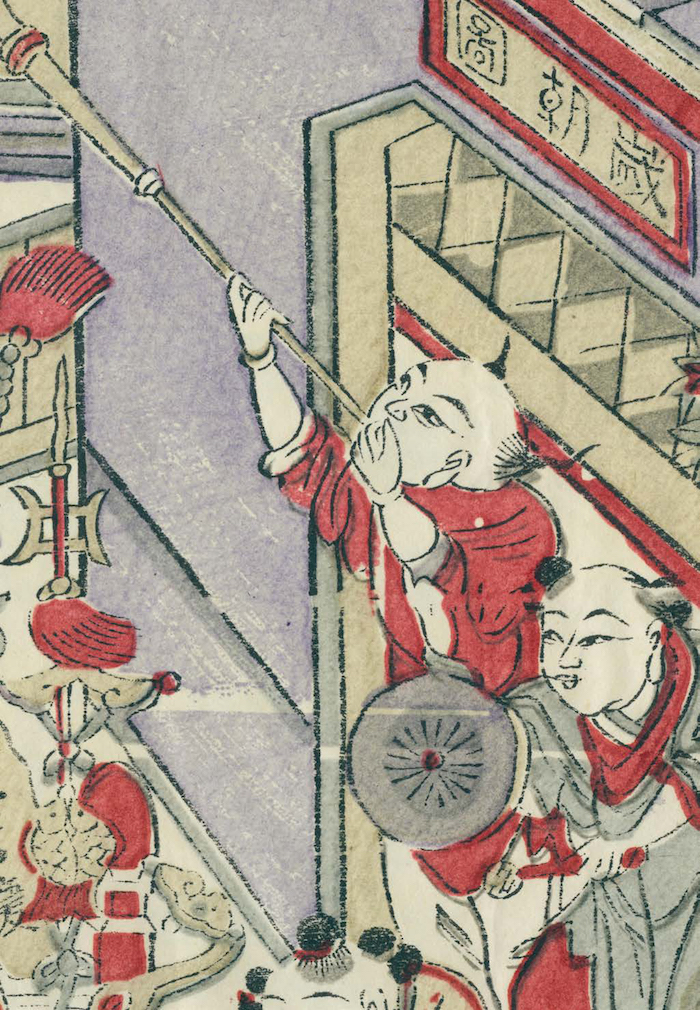 纪九经救白玉楼 清代版/灯画/木版套印与墨线/纵35.1厘米·横46厘米/义兴成/河北武强