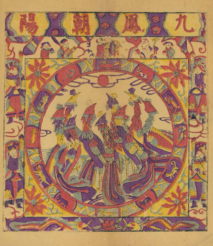 此种体裁是过去普通人家新年时粘贴于“天地桌”前的“桌围”之一种。凤凰乃祥禽圣鸟,以此歌颂国泰民安、天下太平。