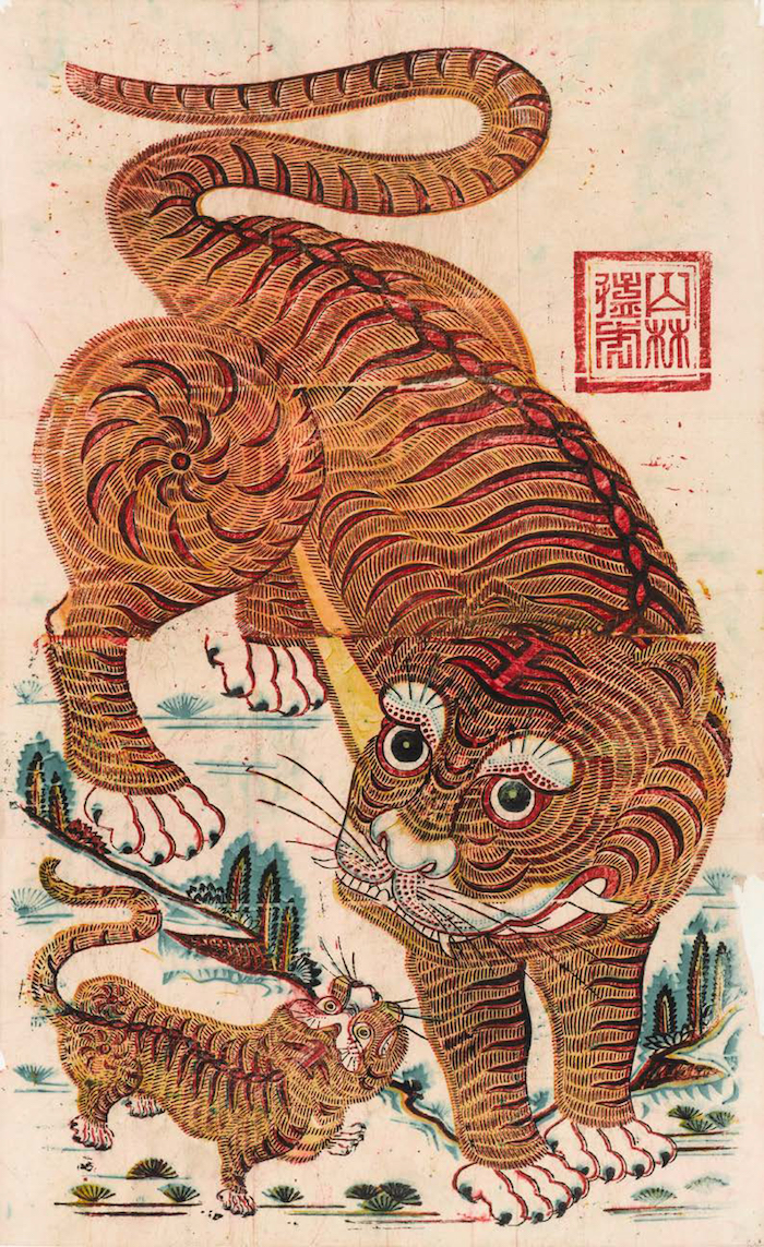 山林猛虎 清代版/中堂/木版套印/纵79.4厘米·横48.7厘米/山东杨家埠