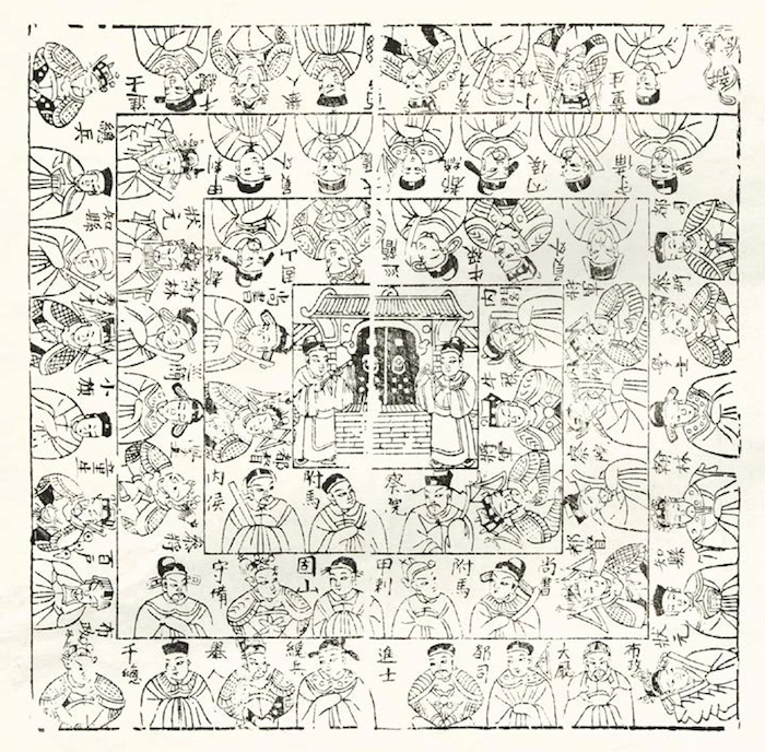 “升官图”作为博戏的历史可以追溯到唐代李郃所创的“彩选格”,同代房千里《骰子选格序》中亦载:“以数多寡,为进身职官之差”,知此类玩赏之作始自唐代。宋代时又加以改造和完善,因带有吉祥色彩,故在新年中流行。