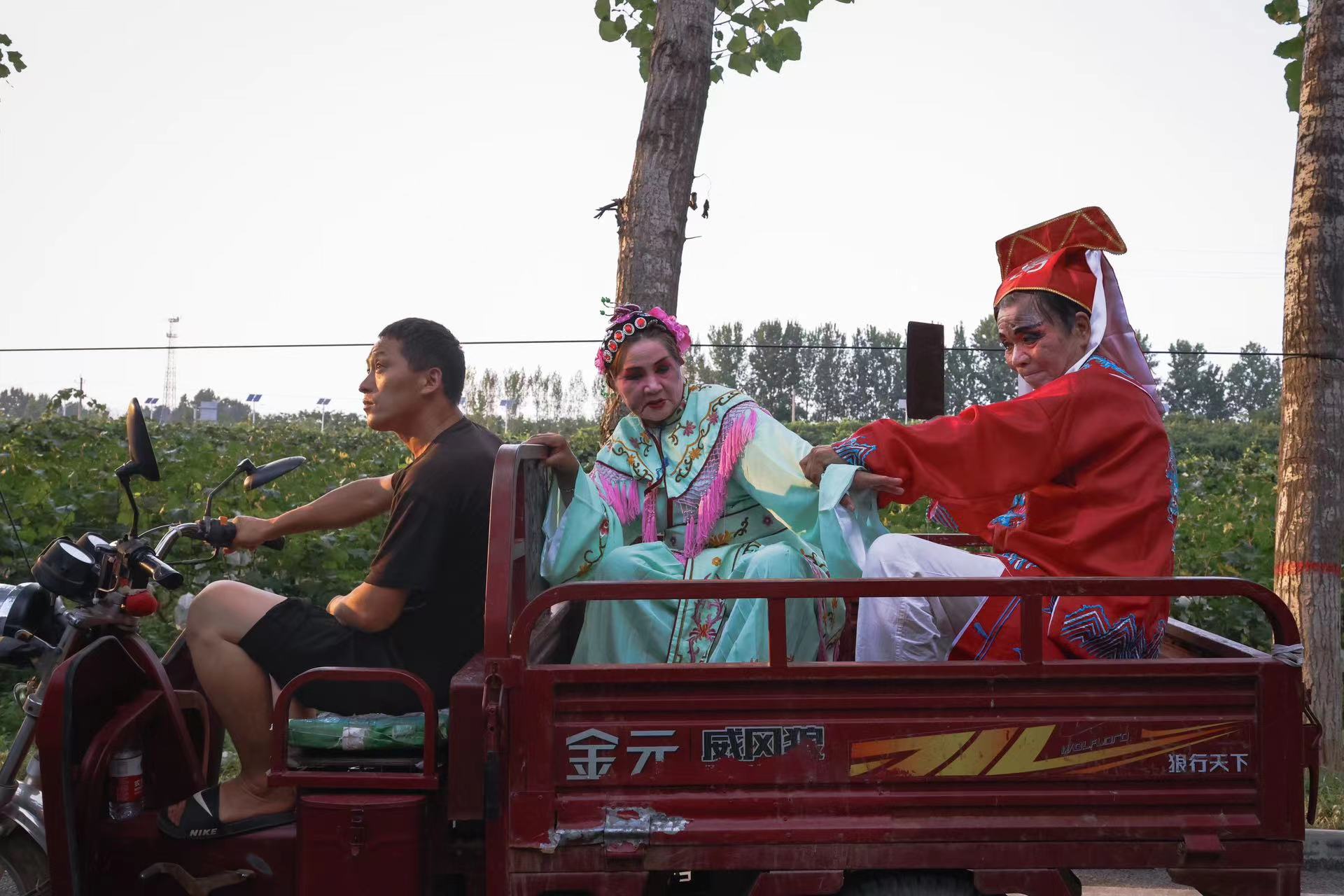 反家暴巡演过程中,村里很多人跑出来看。当时正好是吃饭的点,我记得,一位大爷端着一碗面,急匆匆地跑出来看。到第二个村的村委会门口时,有很多老人小孩,加起来有五六十人围观。当时,一辆三轮车没油了,一辆三轮车爆胎了,场面有点混乱。