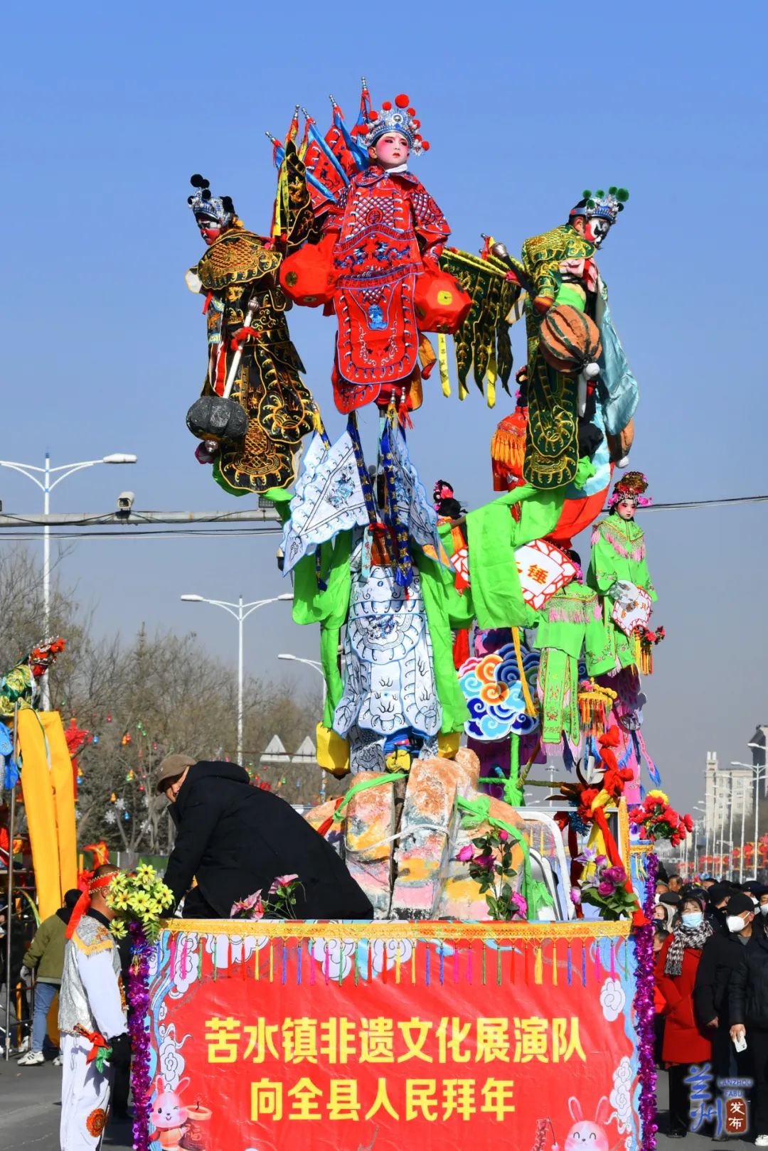2月2日,兰州市永登县滨河大道上人声鼎沸,喧天的锣鼓吸引了无数市民前来观看,来自城关镇等13个乡镇的社火队为城乡居民献上精彩的社火表演,营造出浓浓的喜庆氛围。
