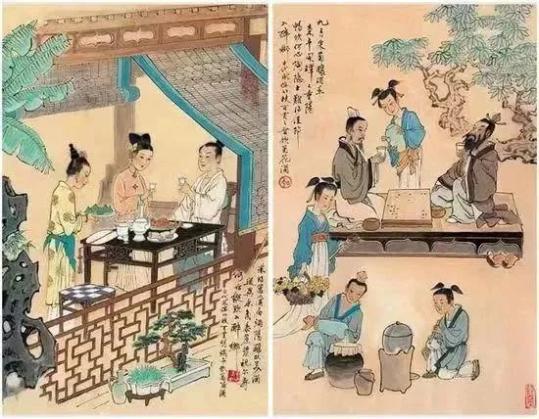 汉代新年时饮的酒,和平时也有所不同,称为椒柏酒,实际上是由椒和柏酿成的两种酒。“椒”是一种香草,“柏”是长青之树,古人将之视为长寿的象征,于是用柏叶酿酒,用于新年祝寿。