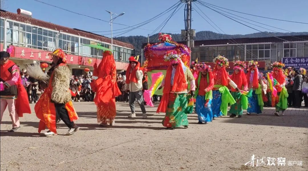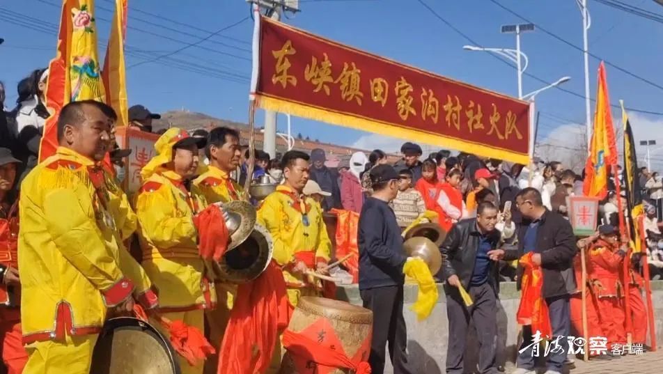 2月17日,青海省大通县东峡镇田家沟村社火队来到东峡镇衙门庄村展演,给村民们带来了一场视觉盛宴。表演现场锣鼓喧天,人山人海,热闹非凡。演员们精彩的演出引来了观众阵阵掌声和喝彩,或精美或诙谐的服饰装扮也博得观众的注目和喜爱。