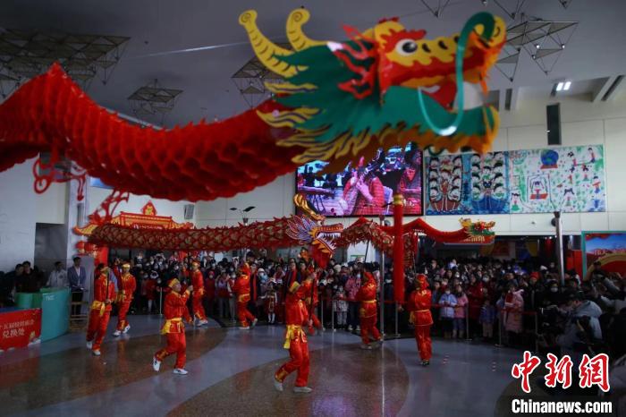 1月20日,少年儿童观看中国非物质文化遗产舞龙表演。当日,天津市第十五届娃娃庙会在天津市少年儿童活动中心(天津市少年宫)欢乐开街。“娃娃庙会”是天津市少年儿童活动中心的一项传统活动。每年春节前夕,中心都会模拟老天津卫的庙会场景,为少年儿童打造一场专属的“娃娃庙会”。 中新社记者 佟郁 摄