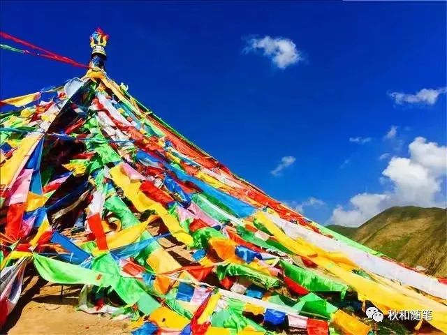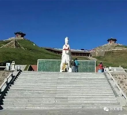 面对文成公主的塑像和相关介绍及遗迹,观者忍不住产生一番感慨与缅怀,吐出一缕思古之幽情。此处天高云淡,视野空旷开阔,周围草场茂盛,山峦起伏绵延,藏情风景很美,令人心旷神怡。我们边看边回味着文成公主和亲的故事,越想越觉得文成公主的智慧非一般常人所能及。仿佛突然产生出许多不一样的感觉和联想。眼前优美无限的风光,极其险峻的景致,空旷灵秀的世界,极目千里的视野,地形地貌的原始,传说优美的人物,曲折离奇的故事,都令人百感交集。