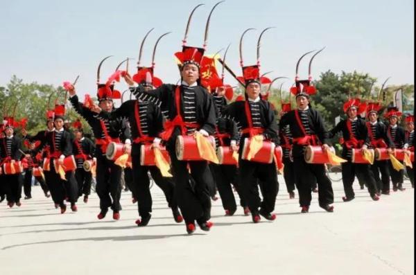 “攻鼓子”不同于一般的“腰鼓”和“太平鼓”,但又融合了腰鼓的灵秀和太平鼓的浑厚,更显洒脱和豪迈。攻鼓子舞的街头表演俨然是古代的武士,传统的攻鼓舞一般由20人组成,头戴黑幞帽,左右两侧插上野雉翎,美其名曰为“招子”,帽两边缀以白色纸花,身着黑色太保衣,下穿灯笼裤,脸上涂脂擦粉,眉毛画得粗黑且上翘,完全一副“夜行侠”的装束。“攻鼓子”讲究打鼓时要手到、眼到、神到,而且要仪表潇洒、干净利落、稳健大方。猛虎出山阵、双将对斗阵、四门兜底阵、四方阵、四龙阵等队形变化万千,气势恢宏;雄鹰展翅、战马凌飞、鹞子翻身、凤凰三点头等舞蹈动作令人目不暇接,叹为观止。