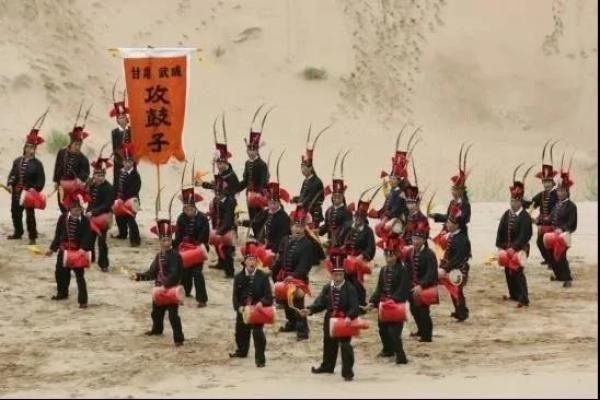 地处河西走廊的甘肃省武威市有一种攻鼓子舞,是以攻为主的表演形式。攻鼓子舞,又称作凉州“攻鼓子”或武威“攻鼓子”,以鼓为道具,以滚法为主要击鼓表演手段,两个人一对,五对为一组,表演时阵法多样,舞步较和谐,整体干净利落。作为一种民间鼓乐表演形式,攻鼓子舞的击打方式及其风格吸取了中国鼓文化的精髓,表演形式独特,凝聚了当地人民对鼓文化的热爱。