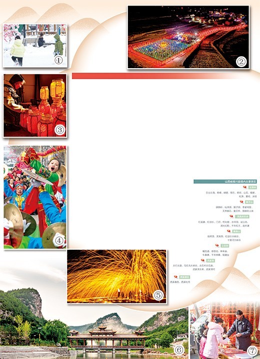 灰瓦屋顶上堆着积雪,红色灯笼挂在门前。进入腊月,山西省晋城市陵川县丈河村的新春活动已经开始预热—沿街的“走旱船”表演队伍在锣鼓声中走来,“穹顶商场”门前摆满了热气腾腾的小吃摊……丈河村是古代长治、高平、陵川往来晋豫两省的重要商道,是典型的交通枢纽传统村落。近年来,丈河村立足村域特色,打造“康养、慢养”旅游地。临近新春,在这南太行深处的美丽村庄,既能寻得年味,也能体验别样风景。