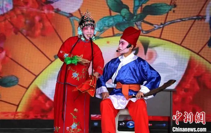 在临时搭建的舞台上,民勤曲子戏演员们个个手脚轻盈灵便,身段活泼自如。(资料图)马爱彬 摄