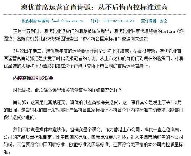 此外,在美优高官网上则清楚写着:在澳优乳业全球产业链布局下,(美优高)负责澳优美优高品牌系列婴幼儿奶粉及营养品在中国市场的推广与销售。