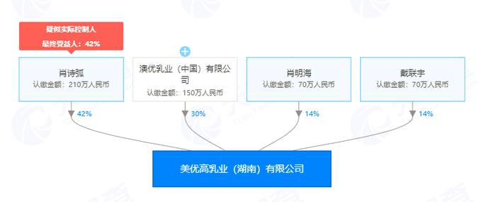 其中,肖诗弧是美优高乳业(湖南)有限公司的大股东,兼任董事长。美优高是一家奶粉销售企业,在天猫和京东均有旗舰店,在销产品有美优高经典幼儿配方奶粉,美优高儿童成长配方奶粉(调制乳粉)、美优高幼儿配方奶粉、美优高孕产妇配方奶粉等。