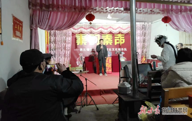 “河东城,困住了赵王太祖……”伴随着铿锵的鼓点和悠扬的琴音,激昂慷慨的秦腔从界石铺镇高堡村“秦韵秦声”娱乐中心唱响,给临近新年的乡村夜晚增添了喜庆欢乐的气氛。娱乐室内炉火蹿动,热气腾腾,《下河东》《探窑》《华亭相会》等经典秦腔唱段轮番唱起。台上人唱得认真投入,台下人听得如痴如醉。