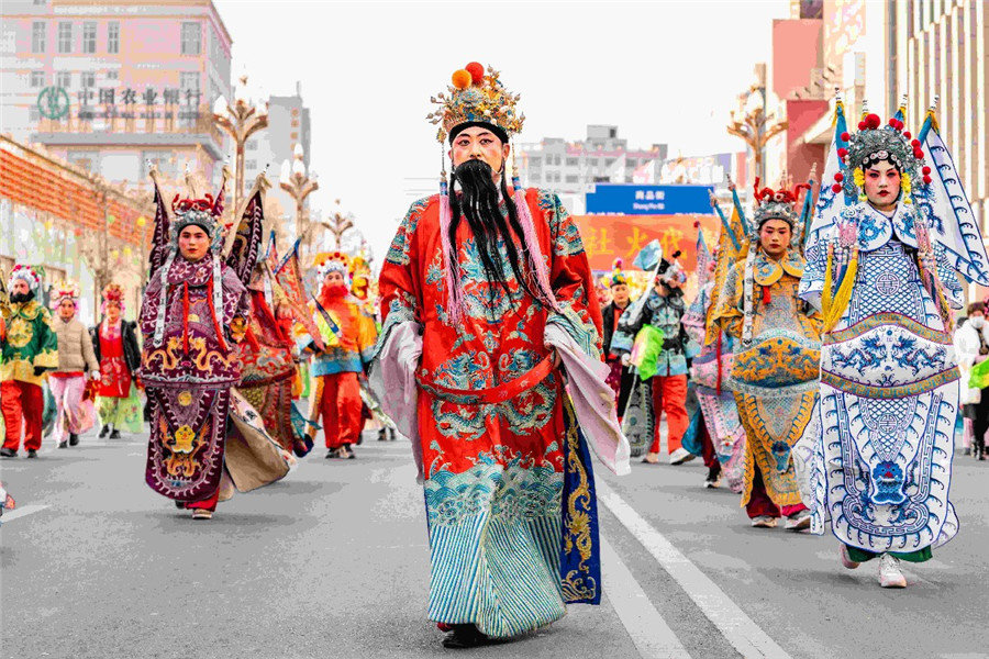 近日,甘肃省武威市凉州区举办了以“社火迎春展新篇,鼓舞凉州创辉煌”为主题的社火展演活动,让广大市民切实体验了一场年味十足的民俗“文化盛宴”。17支社火展演队伍共4000余人在锣鼓声中,整装齐聚,隆重登场。扭秧歌、舞长龙、耍狮子、踩高跷等精彩节目接连上演。