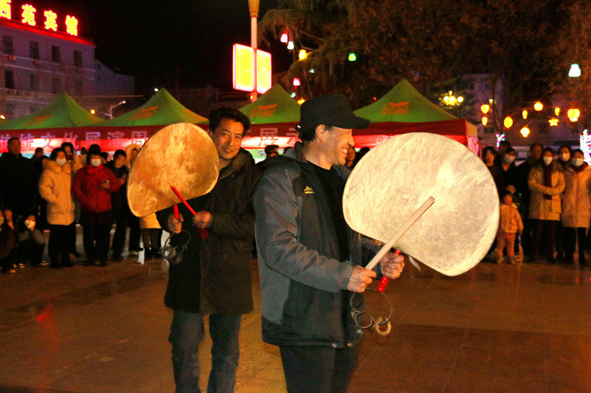 2月4日,元宵佳节来临之际,甘肃陇南礼县城关镇贾胡窑村村民在县城广场上演了一场传承古老且具有民间特殊风韵的舞蹈——“羊皮扇鼓舞”,特有的民俗文化给市民带来了无限的欢乐,给元宵佳节增添了吉祥喜庆的氛围。
