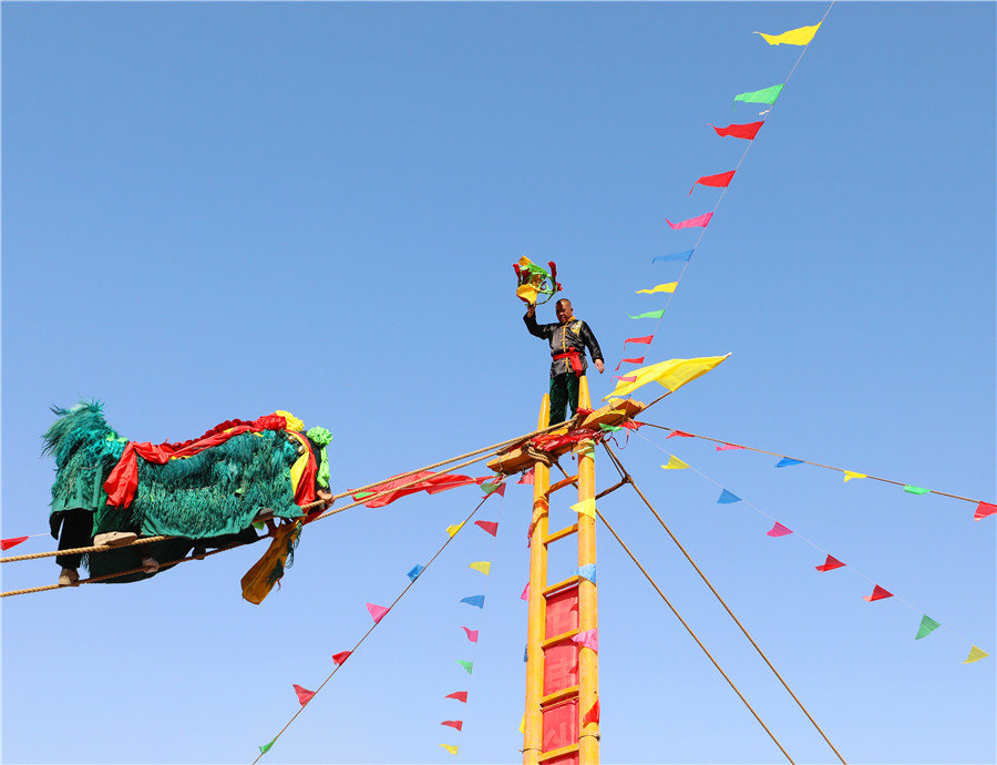 兰州晨报:“狮子登杆” 祈福风调雨顺