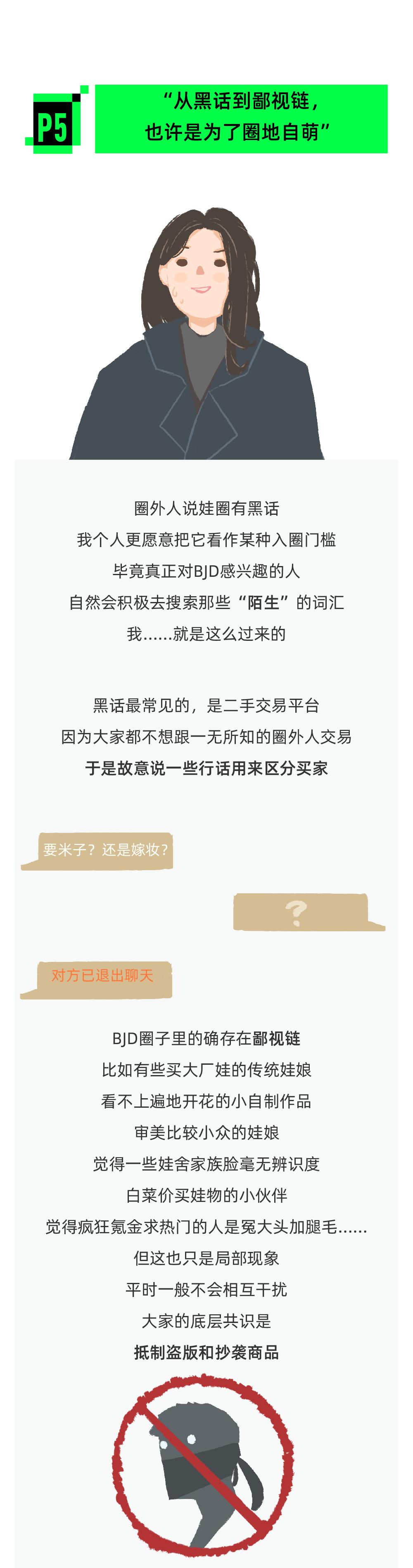 玩娃娃的人称呼自己为“娃娘”和“娃爹”,他们常花费大量的时间和精力在娃娃上,还会在生活中发起聚会(简称“娃聚”),带上娃娃聚在一起拍照聊天。“太太”、“壮士”、“孕期”、“米子”,都是圈内人相互识别的独特词汇。
