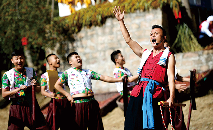 演员在佳县红枣采摘节上表演陕北民歌  新华社/供图