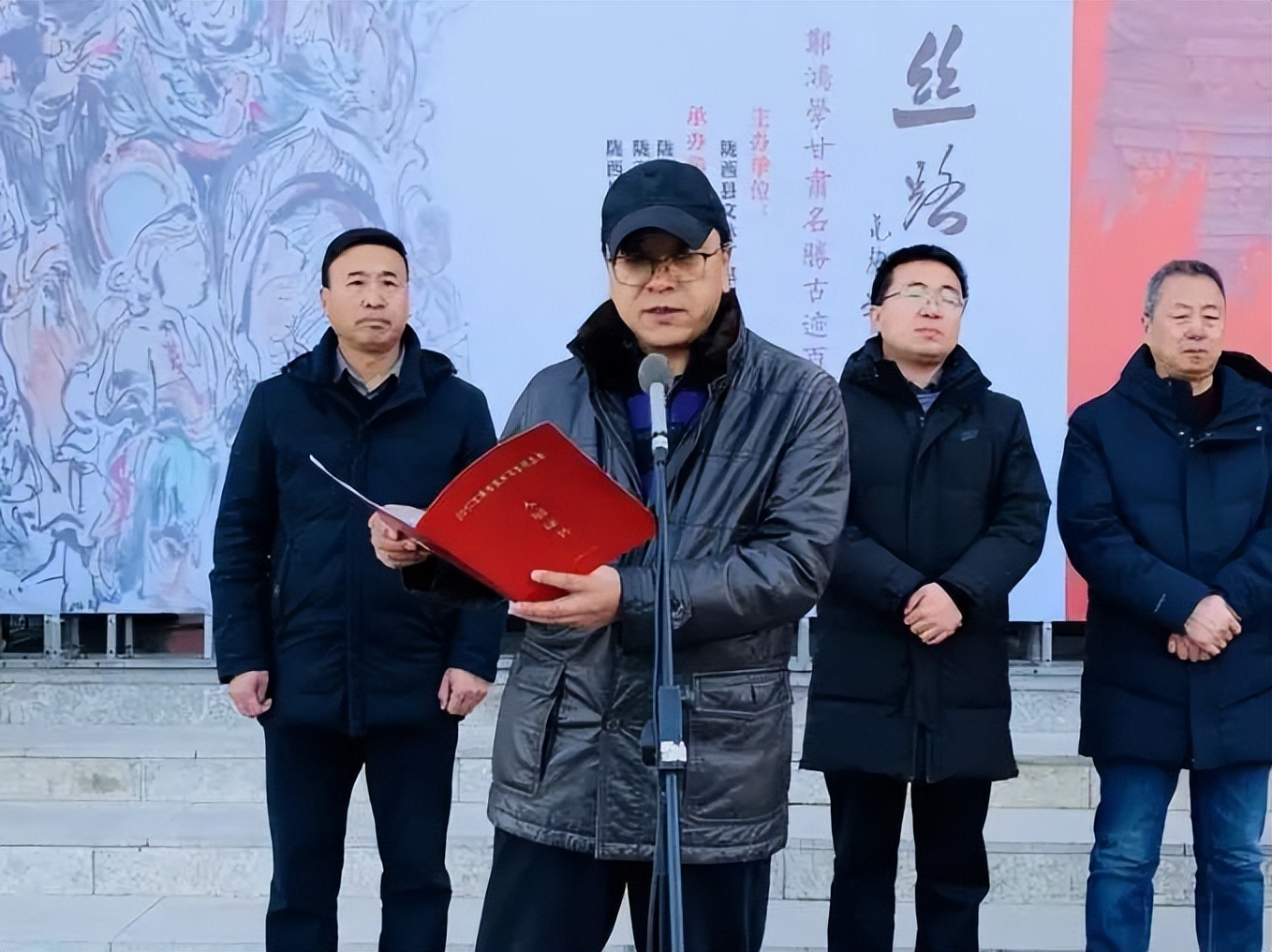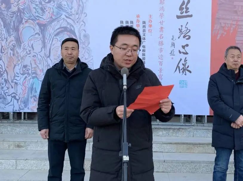 丝路心像作者郑鸿学在致辞中表示,感谢陇西县博物馆为我的《丝路心像——郑鸿学甘肃名胜古迹百景写生展》提供了展出平台。在2015至2016年我有了关于写生甘肃名胜古迹的想法,利用两年的时间,行程两万公里,克服重重困难,最终完成了这个课题并集结成册,今天能够在家乡父老面前展出令我非常欣慰。