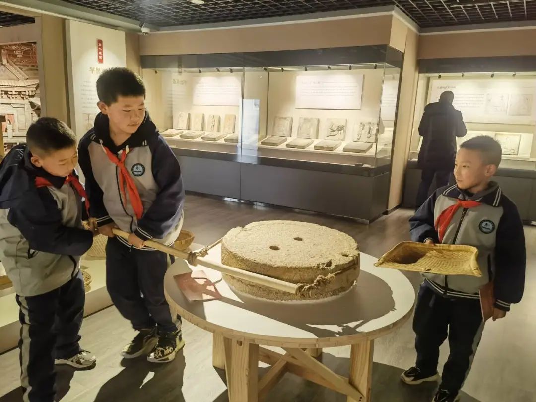 在《彼岸家园——陇西、安定、会宁、武山宋金元墓室砖专题展》上还设置了砖雕文物套色体验区、二十四孝故事翻转墙、农耕文化之石磨、舂米机体验区等配套教育活动区域。