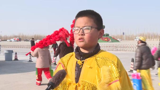 社火表演者周睿杰说:“我今天表演了舞狮子特别高兴,我平时也特别喜欢舞狮子,以后我还要学习舞狮表演,把敦煌的非物质文化遗产发扬光大。”