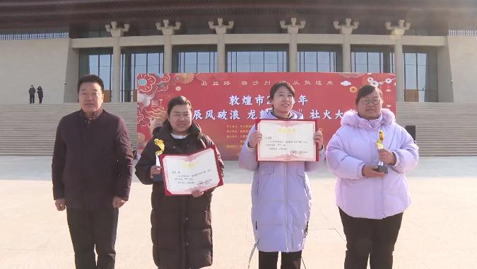 精彩的社火大赛舞出了城乡新面貌和群众新生活,丰富了市民节日文化生活。经过激烈的角逐和精彩的表演,由评委现场打分,最终敦煌市七里镇和转渠口镇社火队获得大赛一等奖,肃州镇、沙州镇、月牙泉镇获得二等奖,郭家堡镇、黄渠镇、阳关镇、莫高镇获得三等奖。主办方为获奖代表队颁发了荣誉证书,并分别给予4万元、3万元、1万元的奖金。