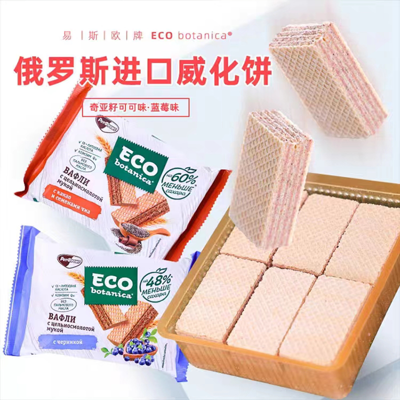 俄罗斯进口ECO全麦威化无蔗糖奇亚籽蓝莓威化粗粮饼干食品买4送1