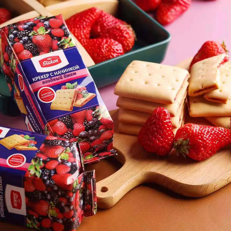 俄罗斯进口斯拉贡杏干蔓越莓果酱夹心饼干营养小麦早餐茶点零食品