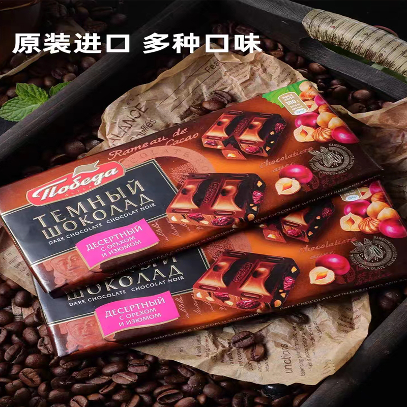 俄罗斯巧可胜原装进口杏仁夹心坚果72%75%85%90%精品黑巧克力零食