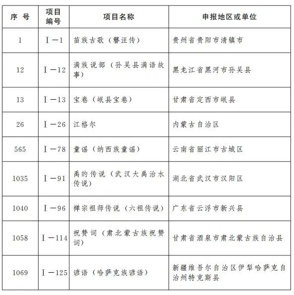 一、民间文学(共计12项)