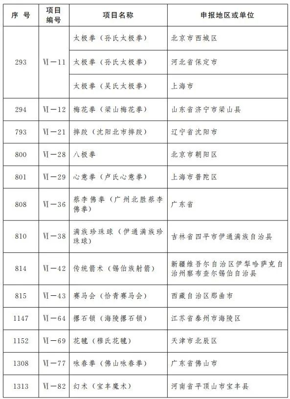 六、传统体育、游艺与杂技(共计13项)