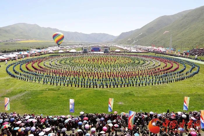 锅庄舞,又称为“果卓”“歌庄”等,藏语意为圆圈歌舞,是藏族三大民间舞蹈之一。在甘肃主要分布在甘南藏族自治州。
