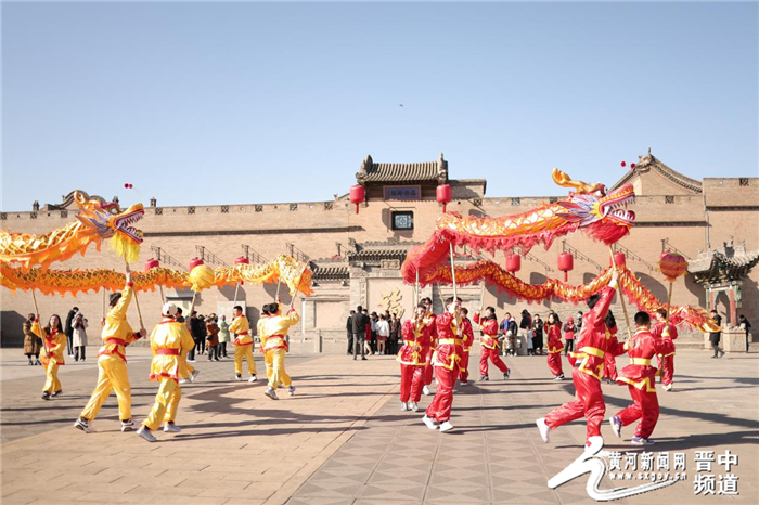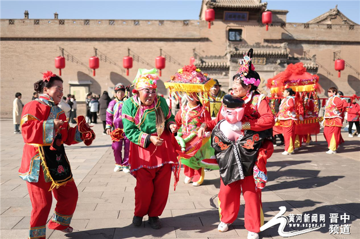 舞者们身着传统服饰,舞步轻盈,姿态优雅,通过灵动的舞姿展现乔家大院的热情与历史韵味,喜迎八方游客。