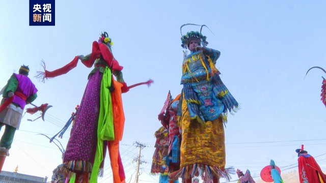 在青海省西宁市湟中区,鲁沙尔社火队的队员们扮成中国传统故事里的人物,脚踩三米多高的高跷,唱起民间小调迎接春节的到来。鲁沙尔高跷源于明代洪武年间,以跷身高、演员多、表演生动、变化丰富、节奏鲜明、韵律高昂而出名。鲁沙尔平均高度2.8米,最高的能达到3.2米,堪称“高跷界”中国之最。