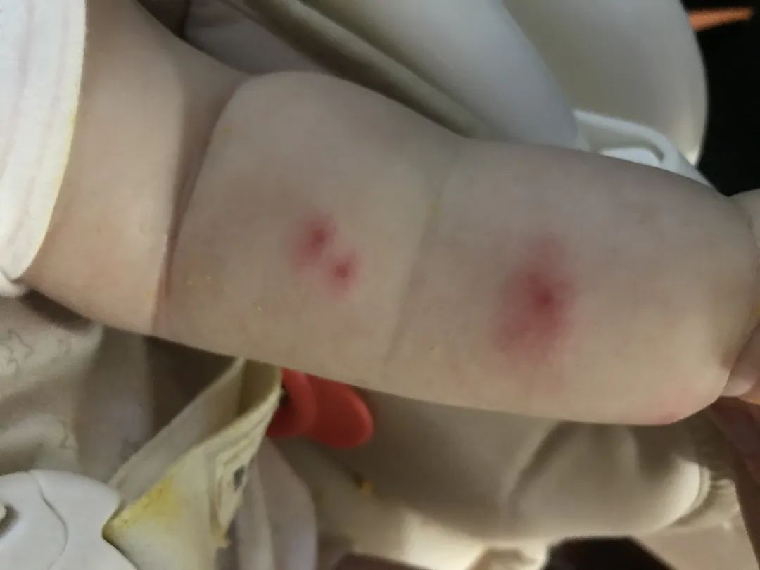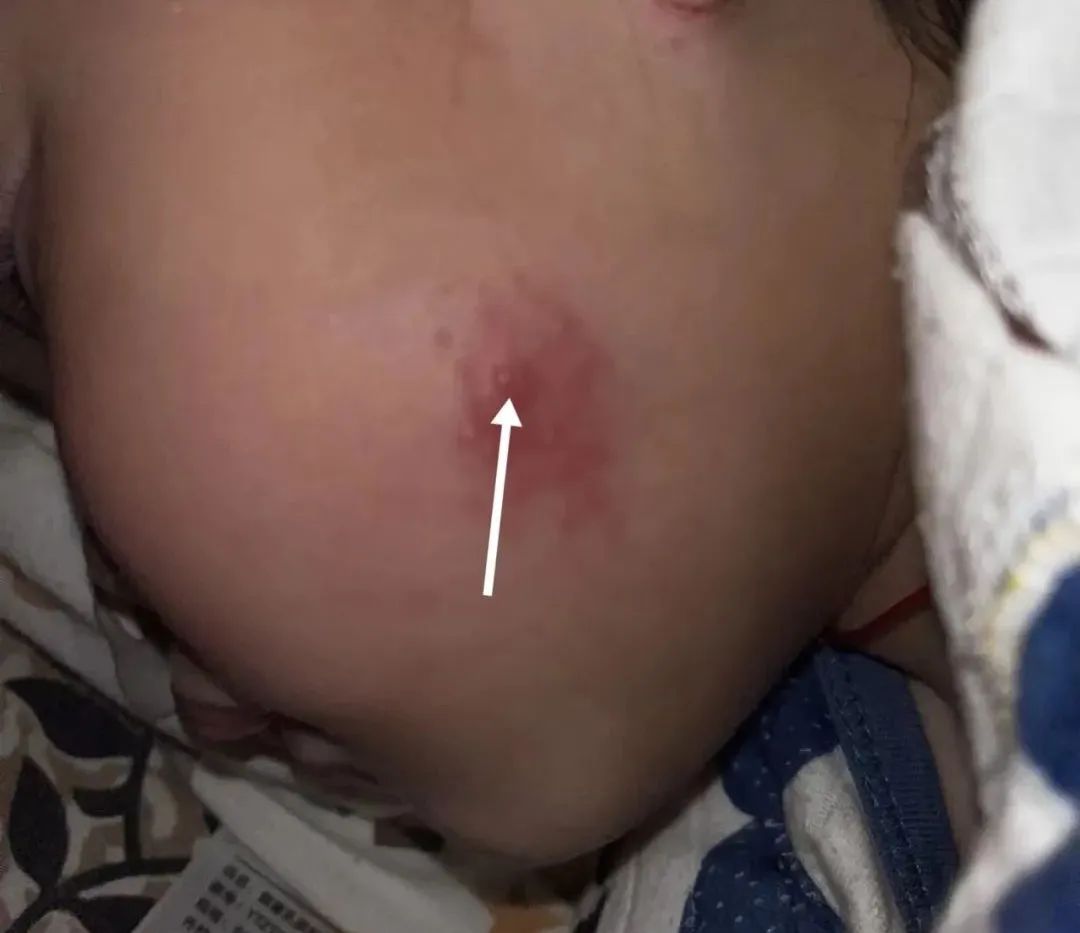 白色箭头指示的是脸上被虫咬的刺吮点