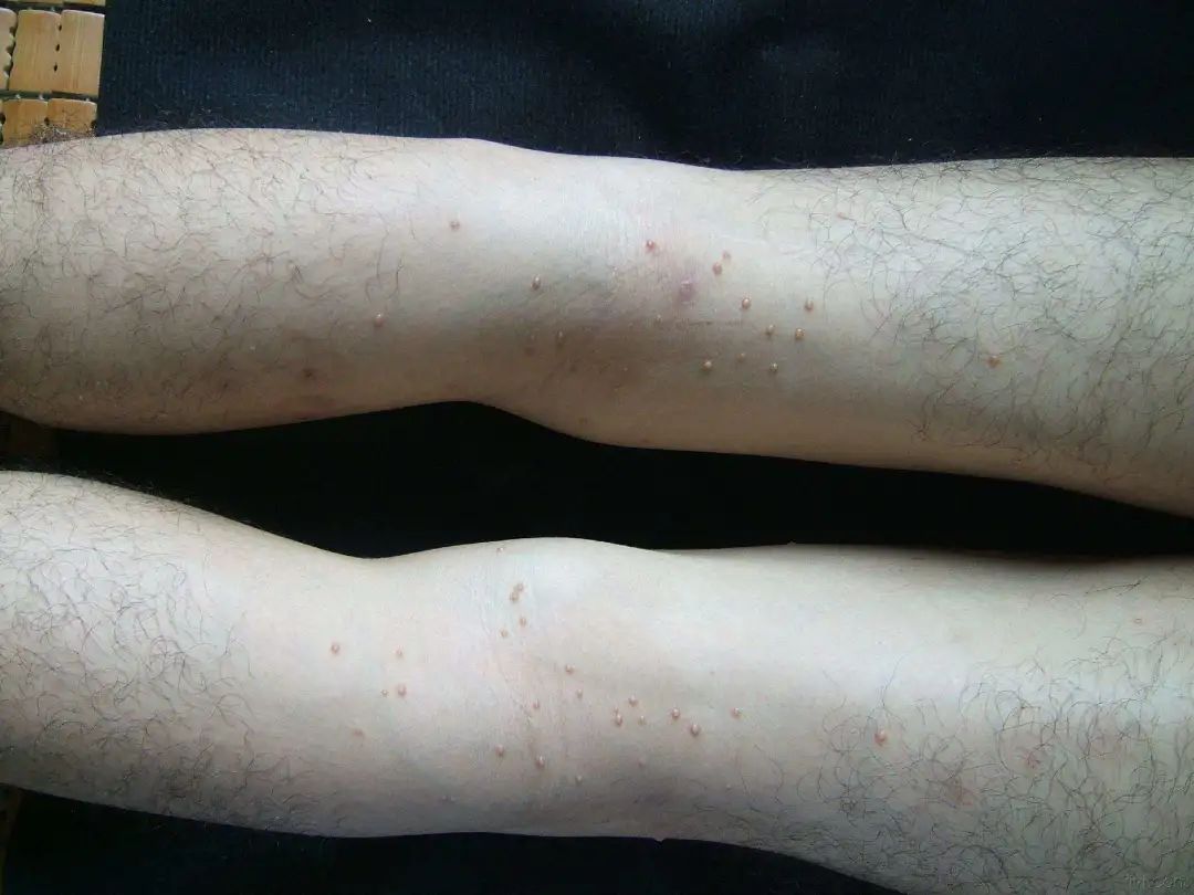 好发部位:手背、肘窝、颈、胸、背、腹部、妇女乳房下以及小儿头面部、臀部。