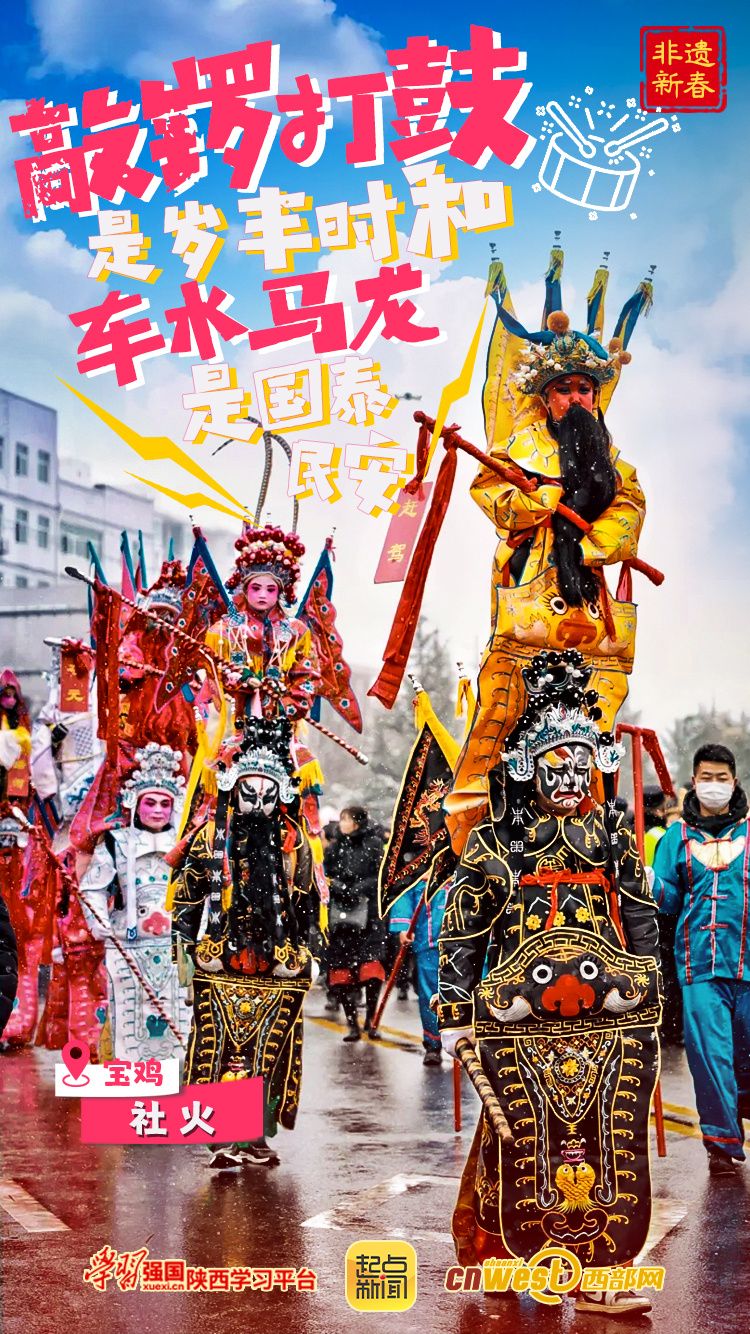 陕西省宝鸡市陇县古时称作陇州,陇州社火,装扮古拙,规模宏大,形式多样,表演精彩。据陇县旧志记载已有2000余年的历史。它从上古祭祀土神“社”日和祭祀火神的迎神赛会活动中产生,经世代传承,繁衍不息,有马社火、背(陇县称“挈”)社火、抬社火等20多个种类。