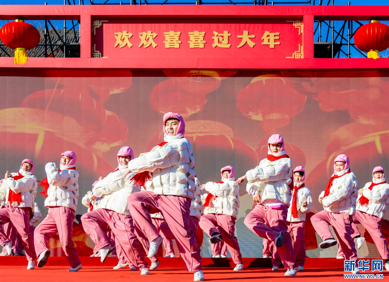 2月3日,演员在呼和浩特新春文化庙会上表演文艺节目。新华网发(丁根厚 摄)